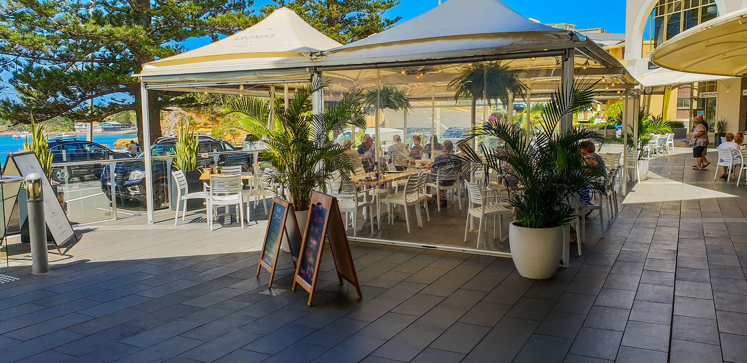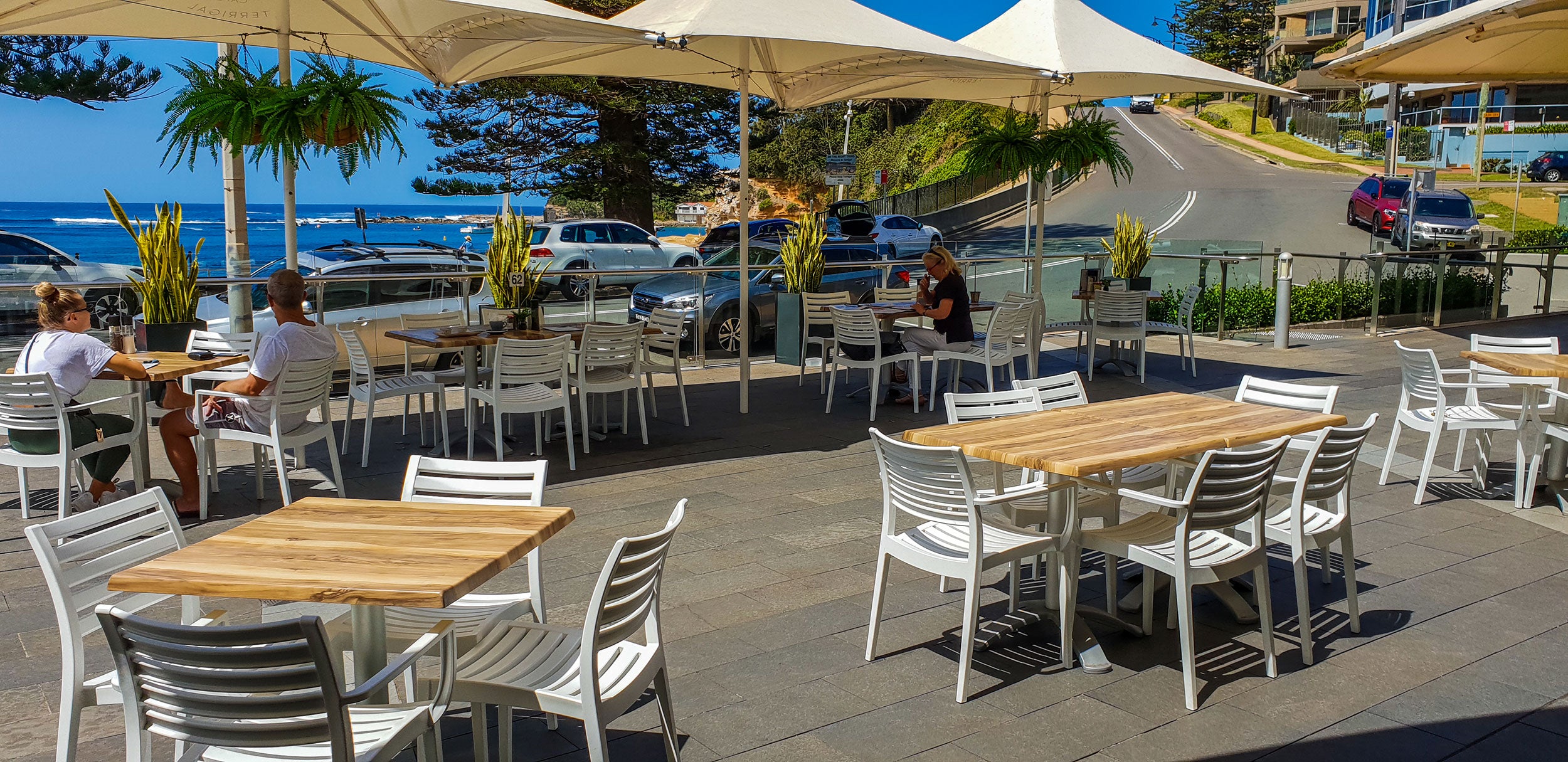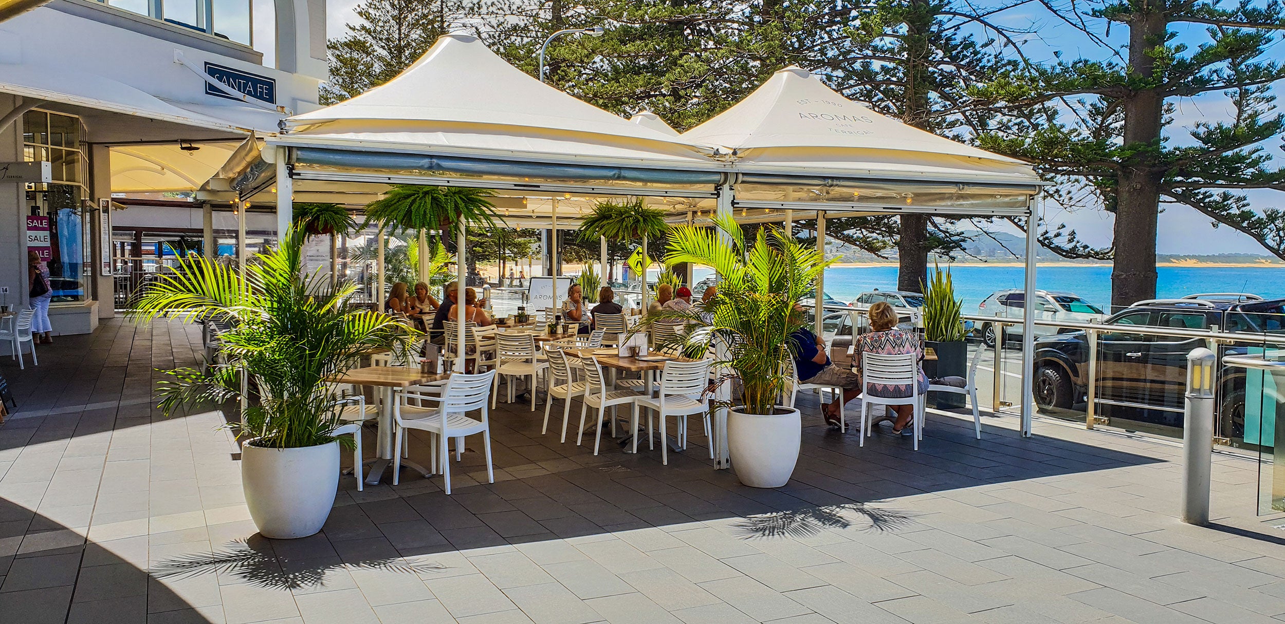 Aromas is situated at the Ocean Front Terrace Crowne Plaza Terrigal directly across from the beautiful Terrigal Beach. The views are stunning and will have you thinking you have landed somewhere in the Mediterranean. A unique Cafe/Restaurant, casual beachfront cafe style.