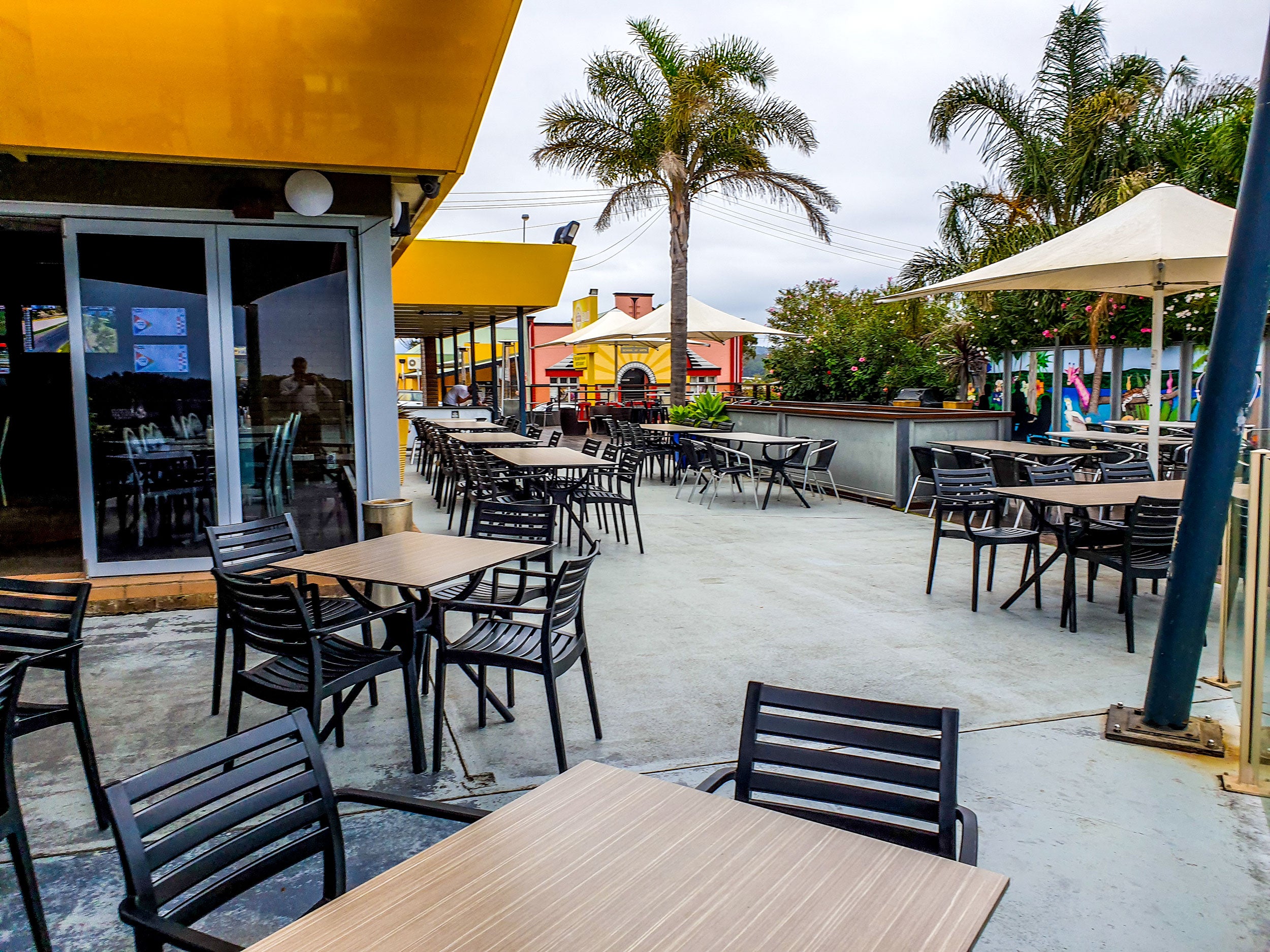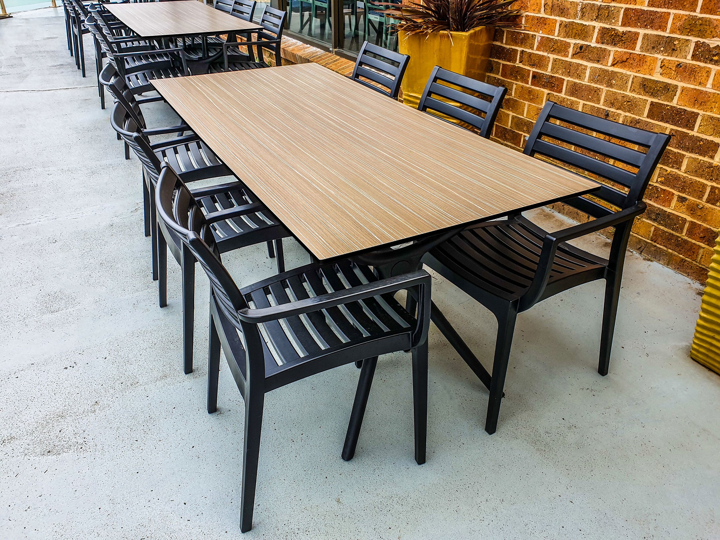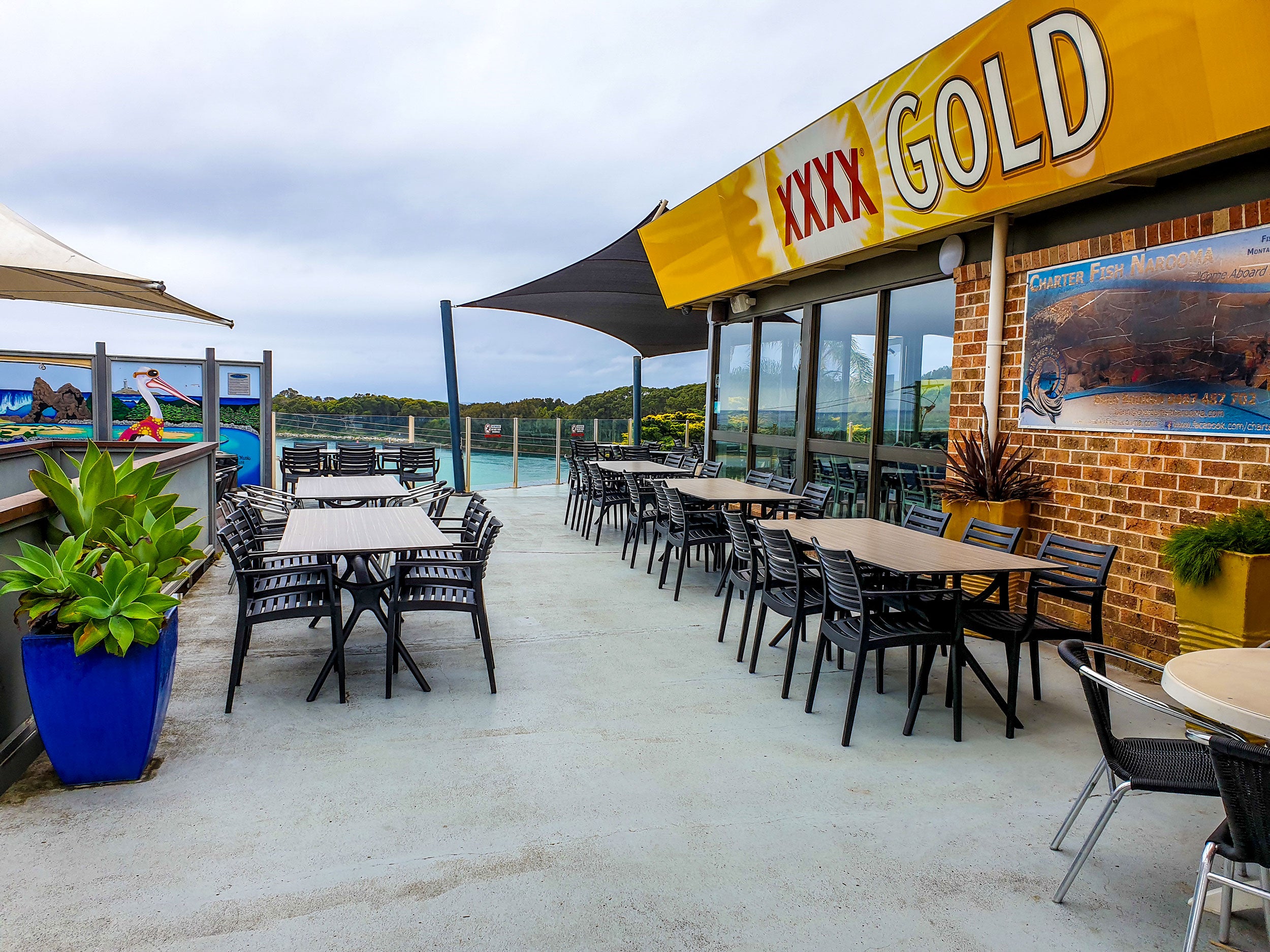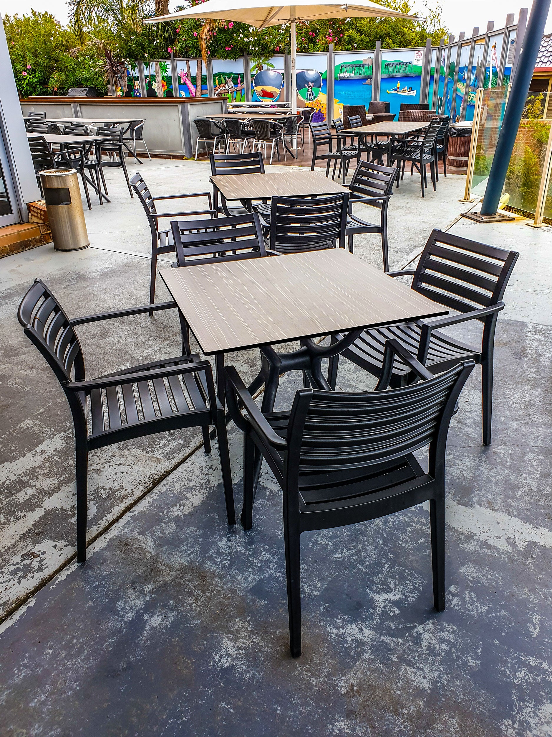 Perched on the rise of Campbell St in Narooma is the Narooma Hotel. Enjoying breathtaking views of the Wagonga Inlet looking out to Wagonga Head and the Pacific Ocean the Hotel is known for its million dollar views. Featuring a large outdoor dining area featuring black Artemis Armchairs black Air Legs and Compact Laminate Table Tops you can enjoy a meal while taking in the views, place a bet in the sports bar or simply enjoy a cold one after a hard days work.