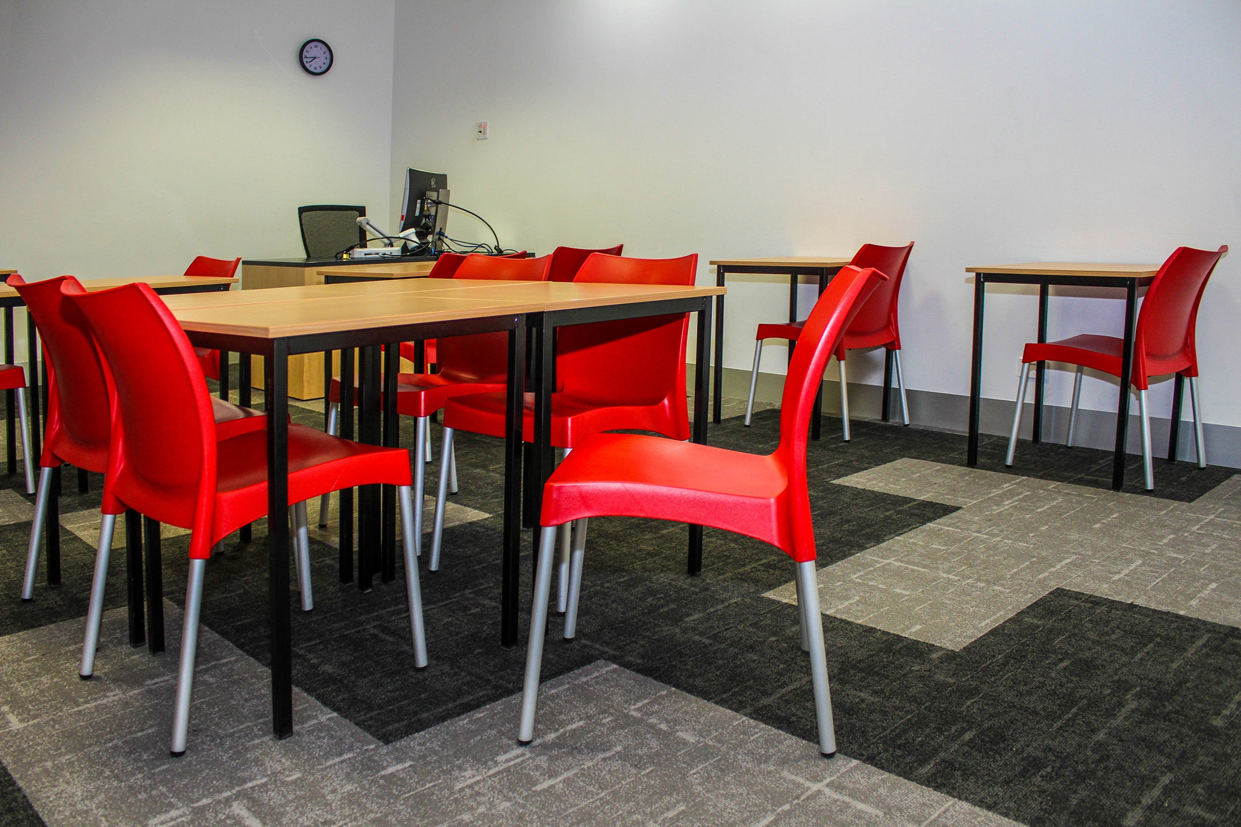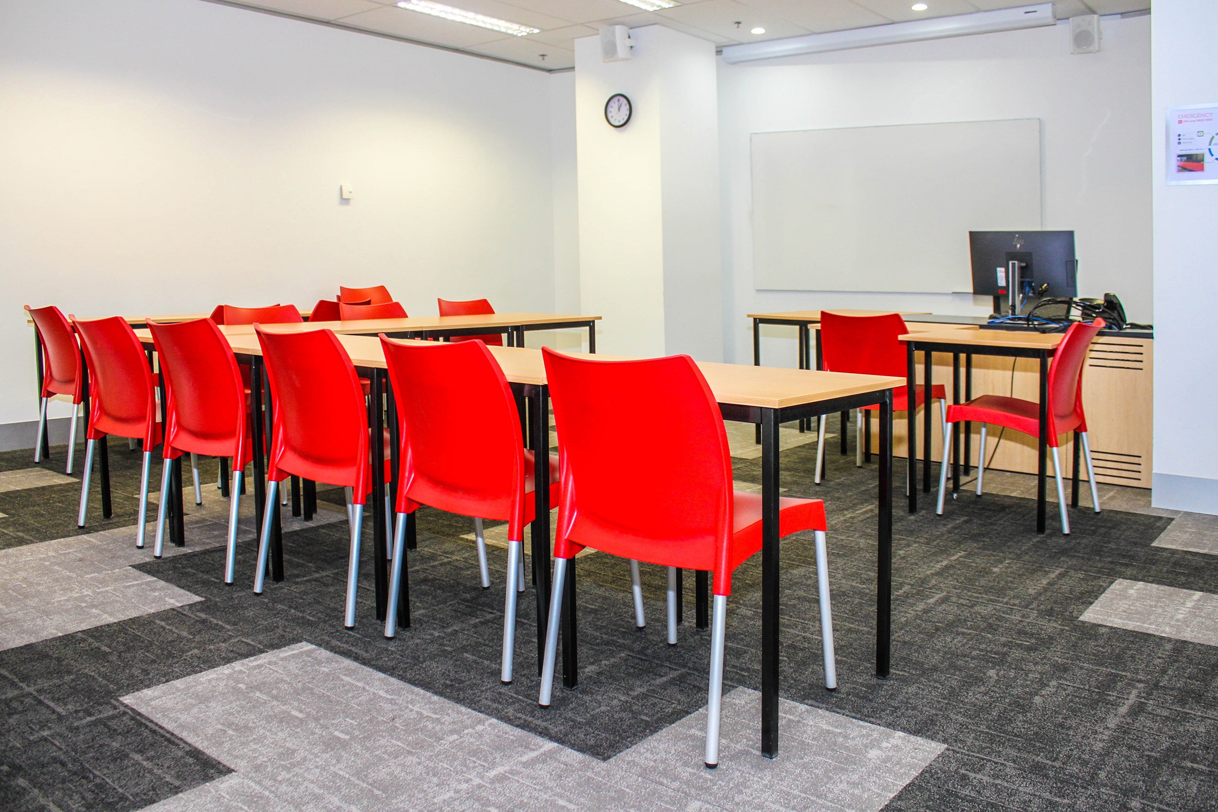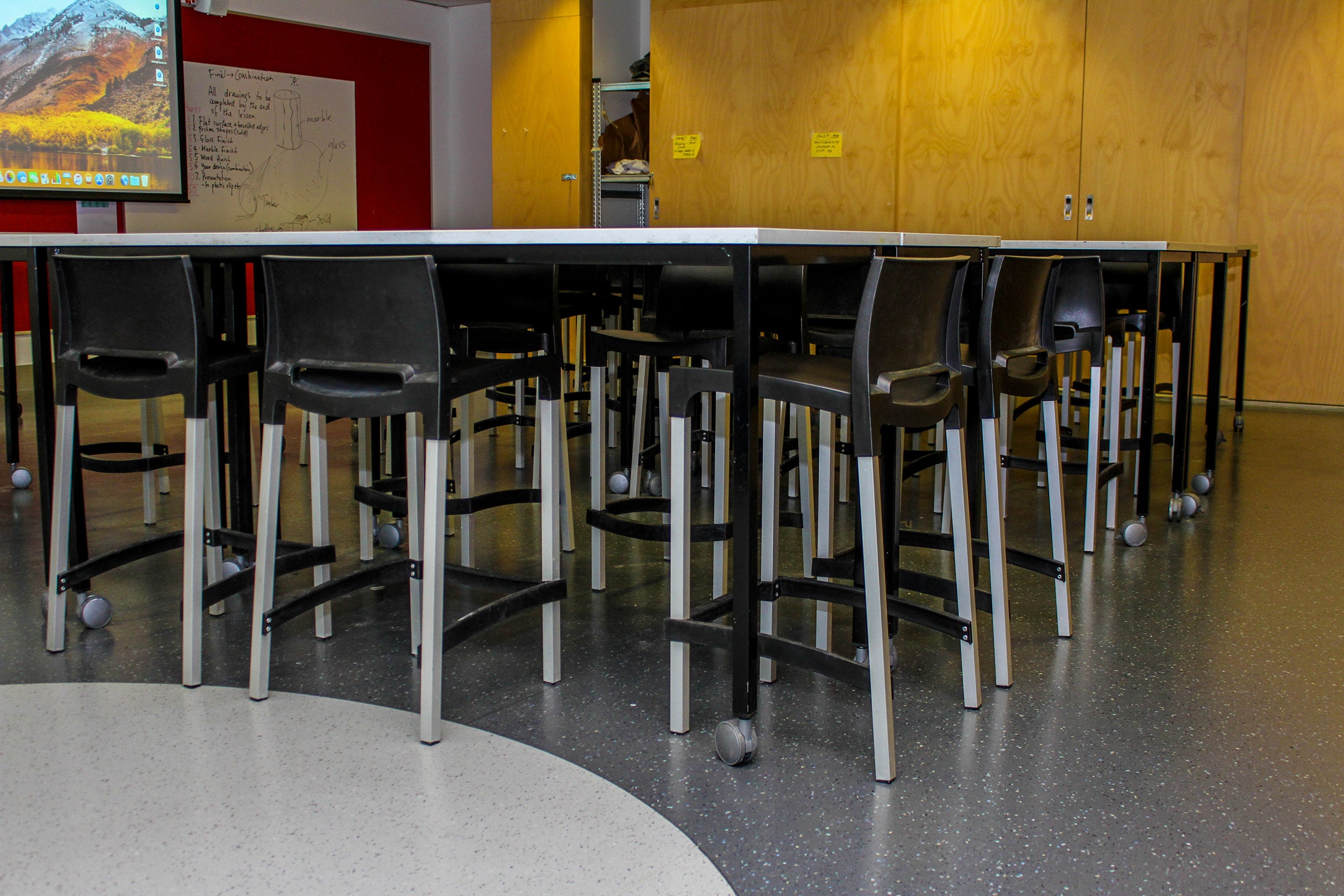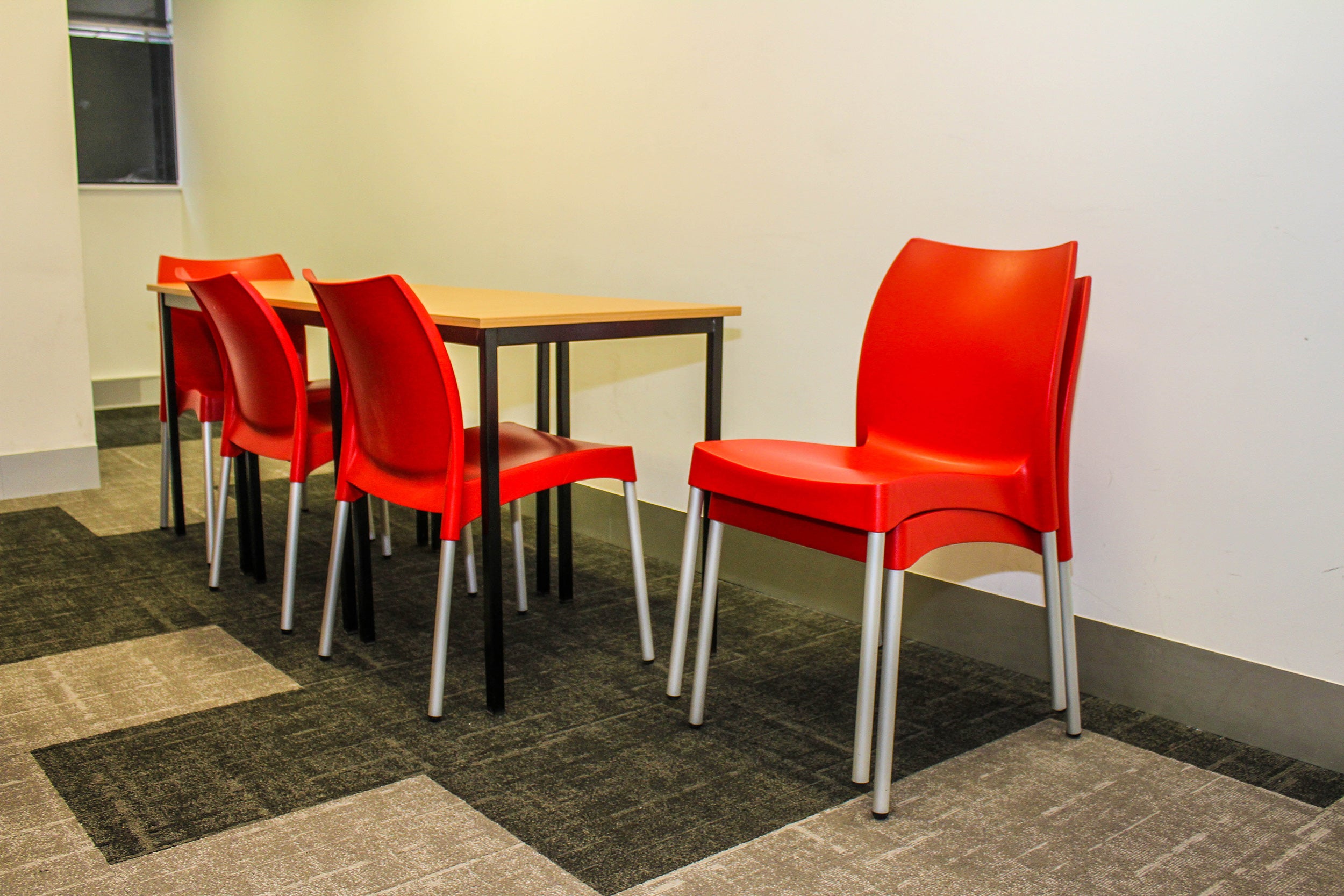 When training at RMIT you will sit in comfort on durable chairs and stools in the classrooms of Building 108. Red Vita Chairs match the RMIT branding and provide a chair that has a reputation of sturdiness and longevity. Black Gio Barstools in the art rooms and other classroom zones once again work in with the branding and like the Vita Chair the Gio barstool is tried and tested in the market known as a long lasting comfortable commercial seat.