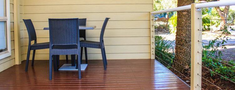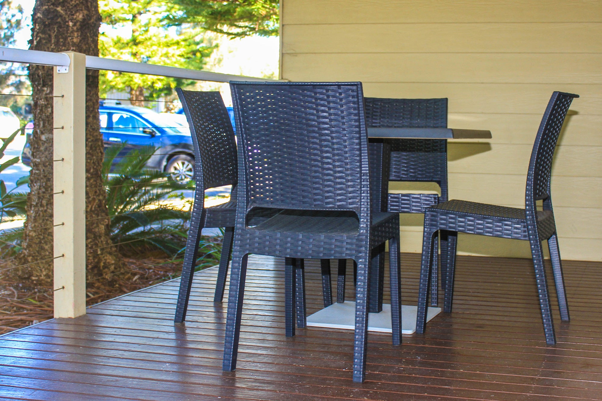 To provide a place to sit relax and enjoy a meal on the decks of the cabins OHF was engaged. With the Lagoon and Beaches surrounding the tropical and tranquil location Resin Rattan furniture was selected to compliment this environment.