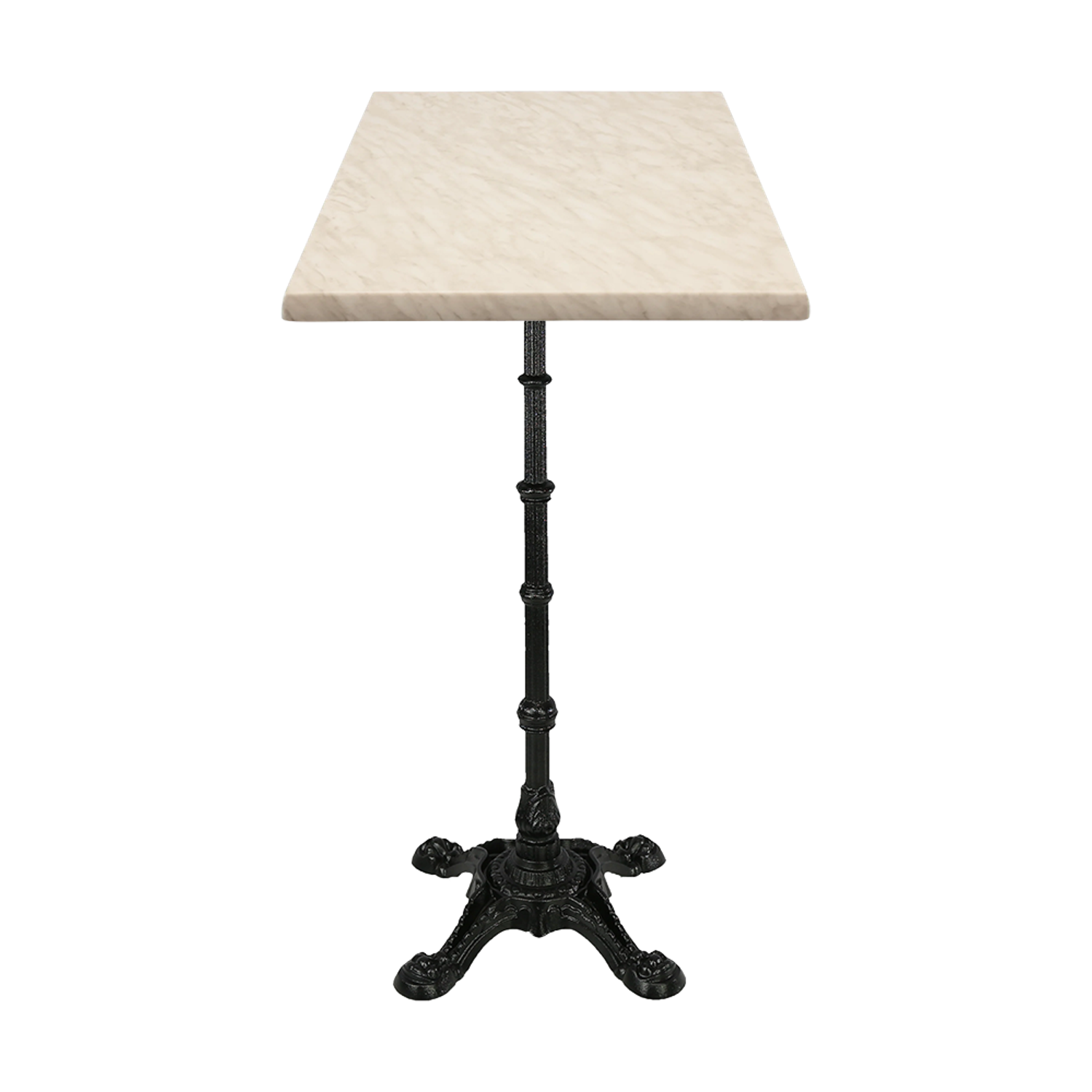 Add a touch of elegance to your dining space with this Bistro Bar Table Kit featuring a sleek marble Werzalit top and durable black powder-coated base. Ideal for both indoor and outdoor seating areas.
