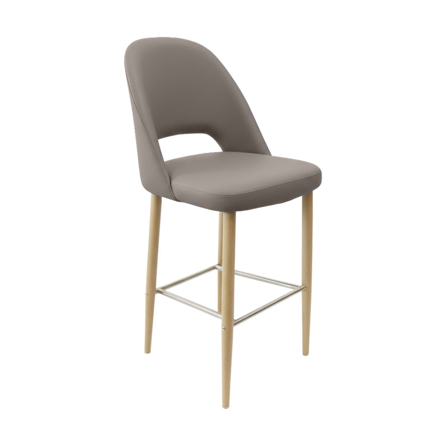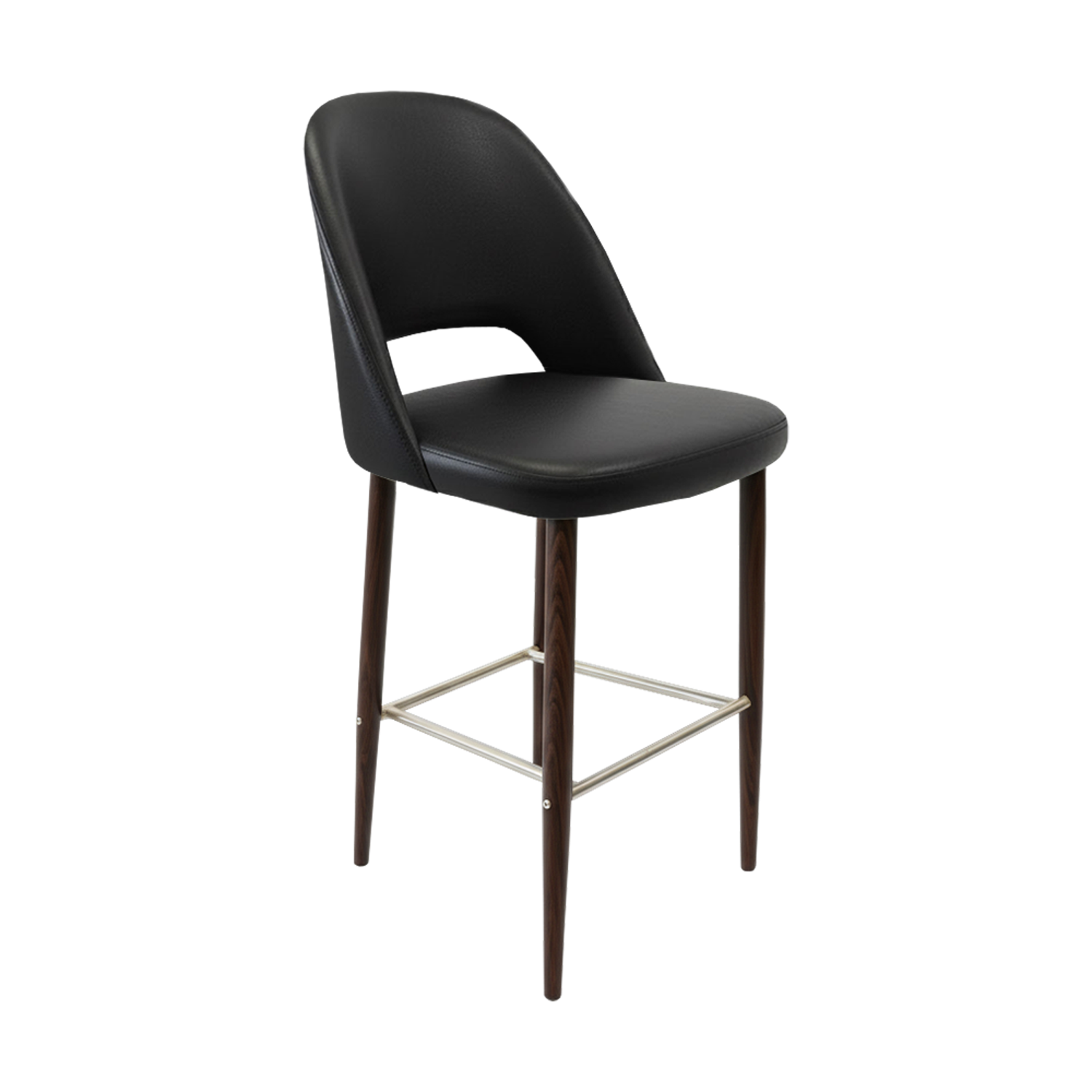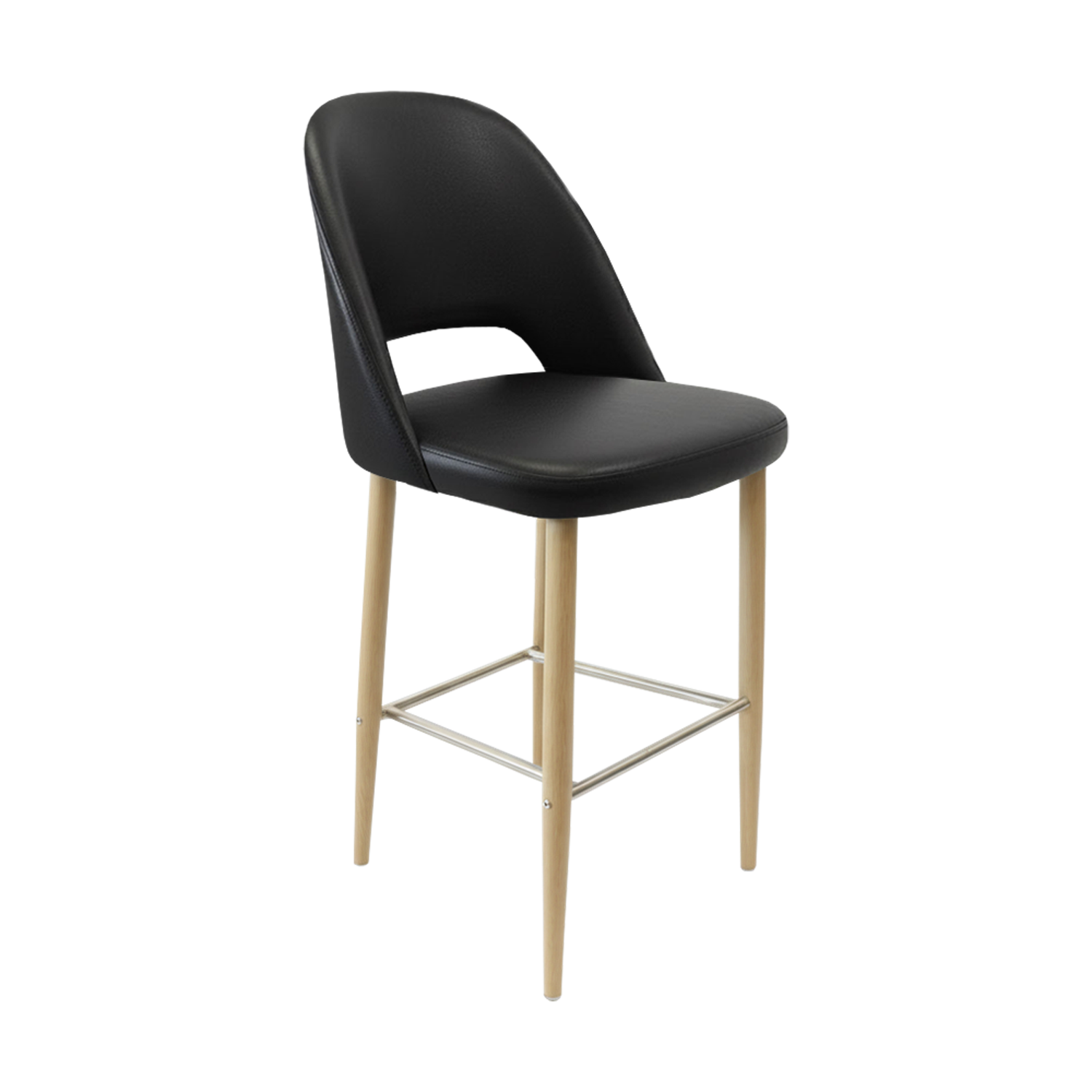 Available in realistic wood-look finishes or durable powder-coated options, the Crescent Barstool can be tailored to suit a variety of interior styles—from rustic cafés to modern bistros. Its clean lines and versatile design make it a seamless addition to any dining space.